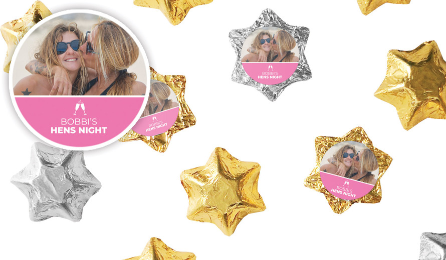A Photo With Right Box Hens Night Personalised Foil Chocolate Stars