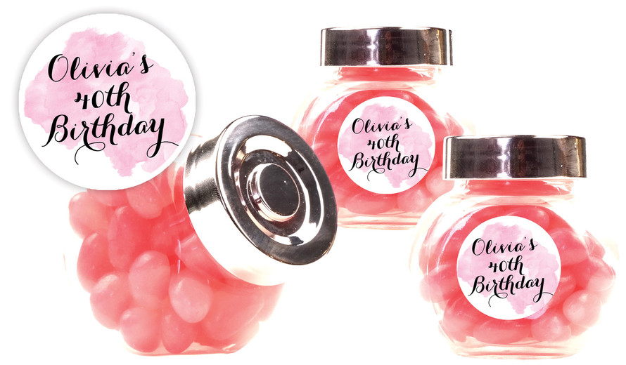 A Splash Of Water Colour Pink Personalised Mini Candy Jar