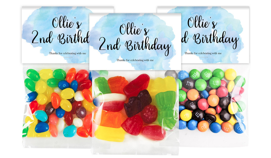 A Splash Of Watercolour Blue Birthday Personalised Lolly Bag With Topper