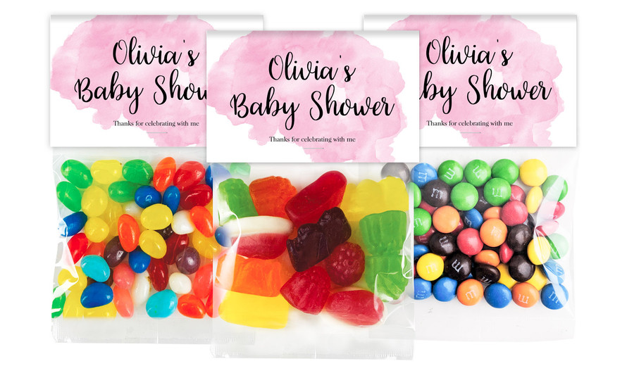 A Splash Of Watercolour Pink Baby Shower Personalised Lolly Bag With Topper
