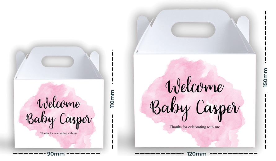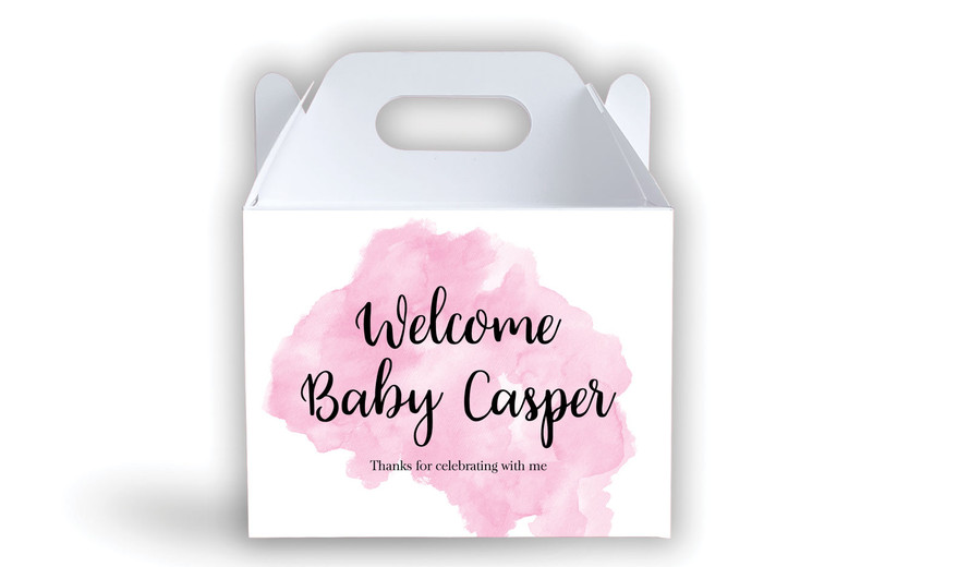 A Splash Of Watercolour Pink Birth Announcement Personalised Gable Favour Box