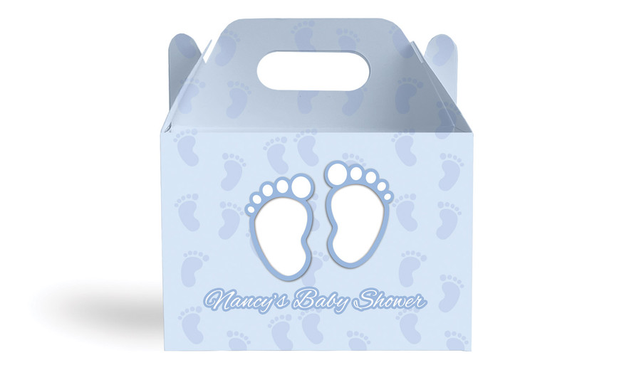 Baby Feet Blue Baby Shower Personalised Gable Favour Box