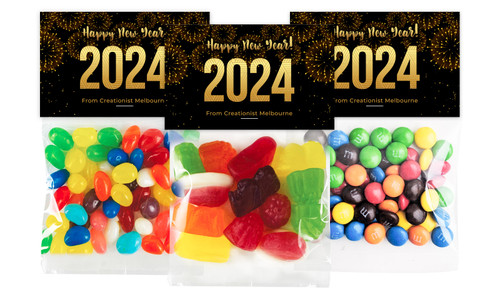 Black And Gold New Years Eve Personalised Lolly Bag With Topper