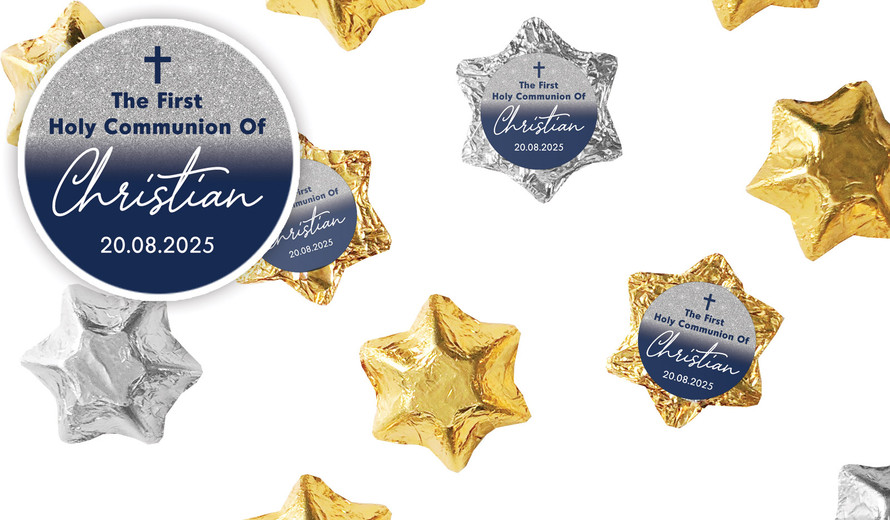 Blue and Silver Glitter Communion Personalised Foil Chocolate Stars