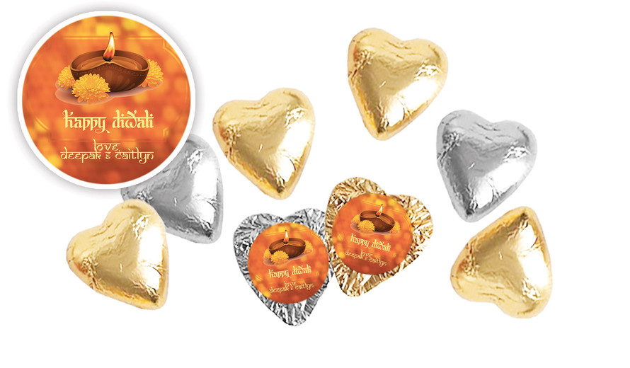 Bokeh Candle Diwali Personalised Foil Chocolate Hearts