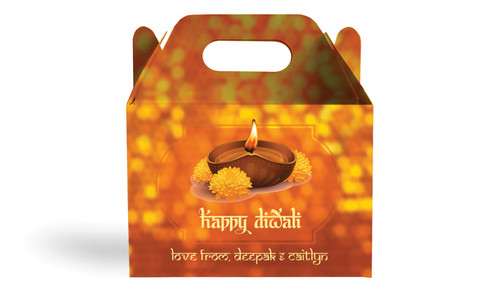 Bokeh Candle Diwali Personalised Gable Favour Box