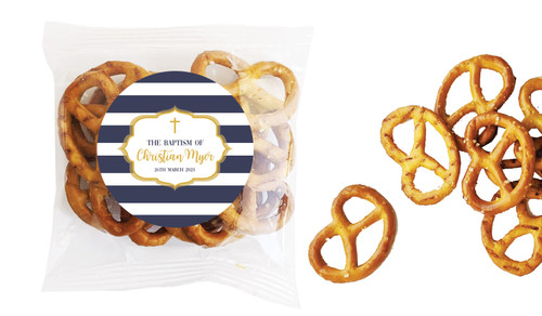 Bold Stripe And Gold Christening Personalised Bag Of Pretzels