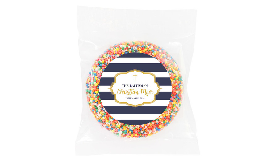 Bold Stripe And Gold Personalised Christening Chocolate Freckle