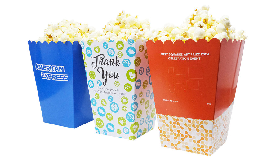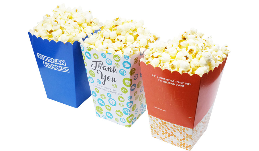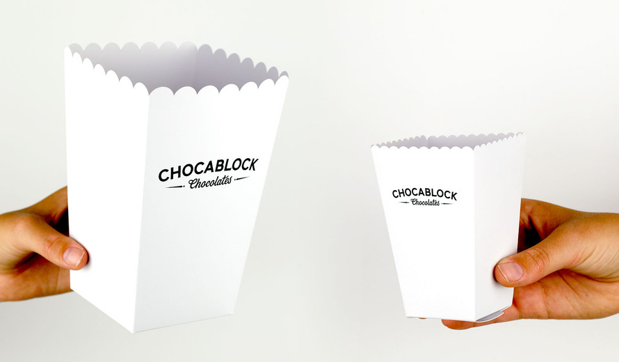 Looking for large branded popcorn boxes fully personalised with your own colours, logos and more? Chocablock designs a wide range of popcorn boxes in Australia in a variety of sizes that you can personalise in any way you like!