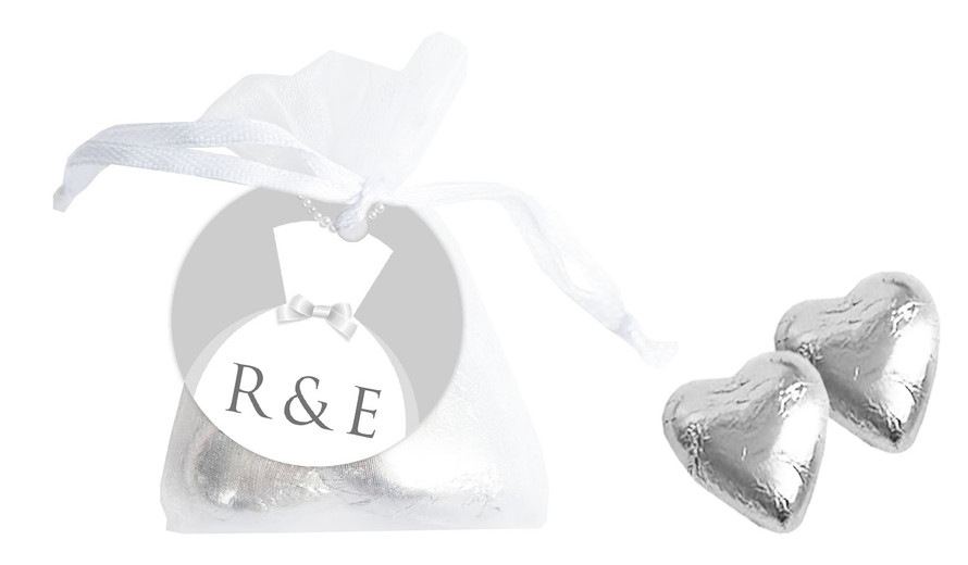 Bride And Groom Dress Organza Bag With Hearts And Tag