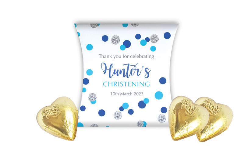 Confetti Blue Christening Personalised Pillow Boxes