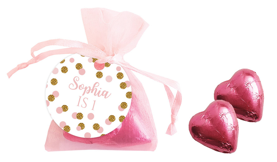 Confetti Pink And Gold Birthday Personalised Organza Bag