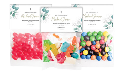 Dream Leaves Christening Personalised Lolly Bag With Topper
