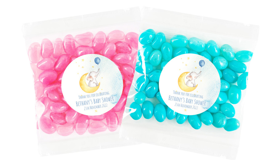 Elephant Moon Blue Baby Shower Personalised Lolly Bag 55g (Choice Of Filling)
