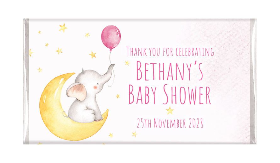 Elephant Moon Pink Baby Shower Personalised Chocolate Bar