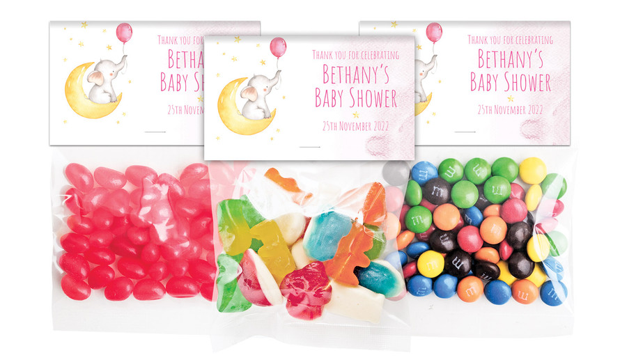 Elephant Moon Pink Baby Shower Personalised Lolly Bag With Topper