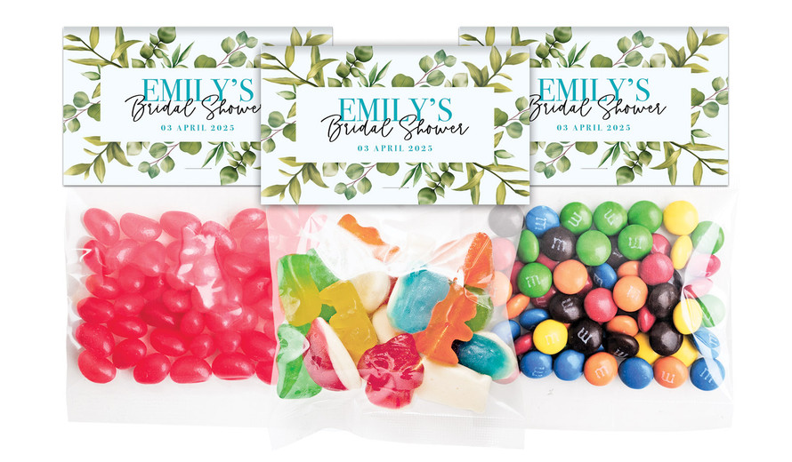 Eucalypt Bridal Shower Personalised Lolly Bag With Topper