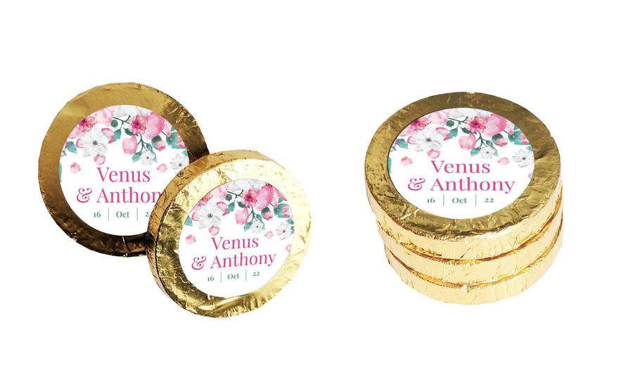 Falling Petals Custom Wedding Chocolate Coins (Gold Or Silver)