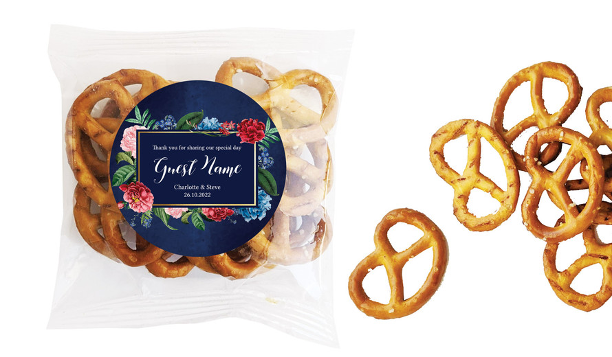 Floral Frame On Navy Wedding Personalised Bag Of Pretzels