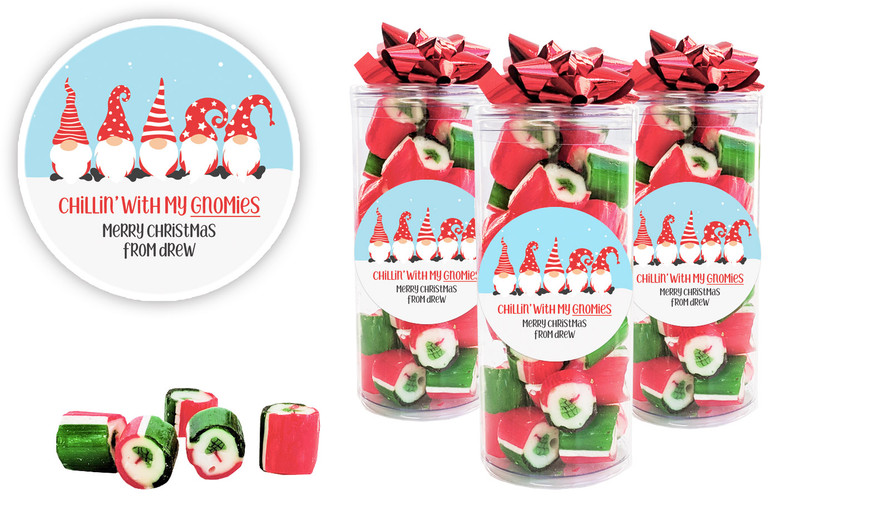 Gnomies Christmas Personalised Custom Rock Candy Tube