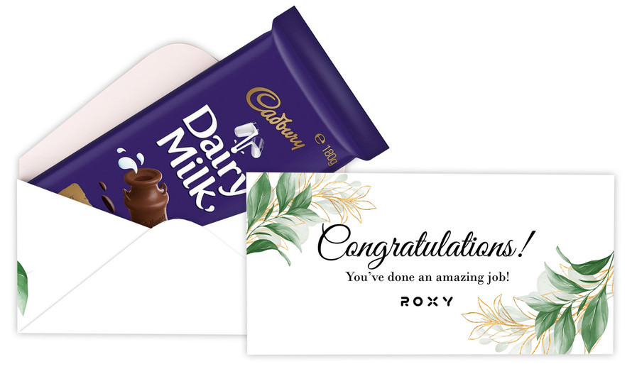 Gold And Green Leaves Congratulations Personalised Cadbury Bar Box (Box Only)