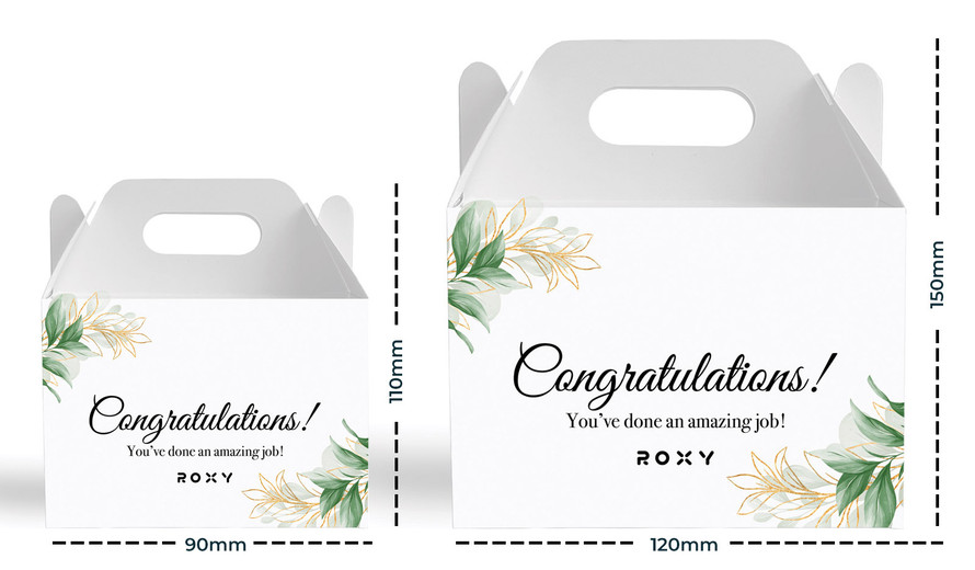 Gold And Green Leaves Congratulations Personalised Gable Favour Box