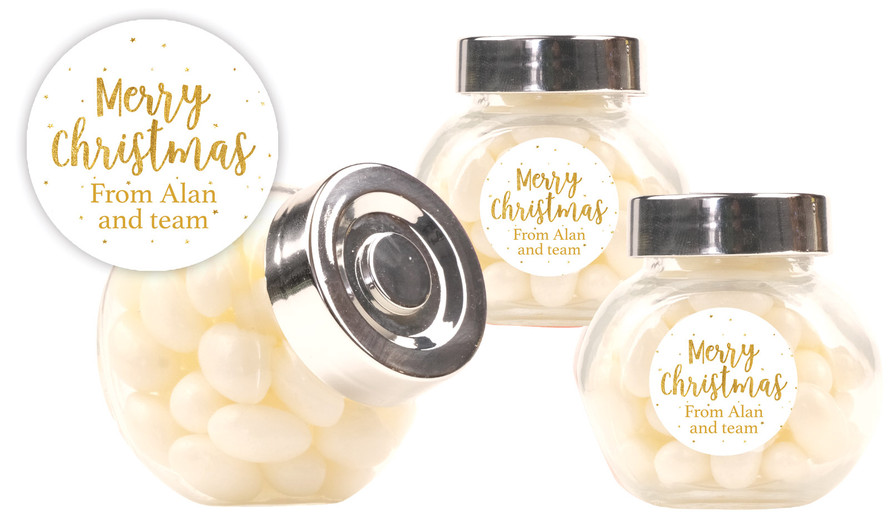 Gold Confetti Stars Christmas Personalised Mini Candy Jar