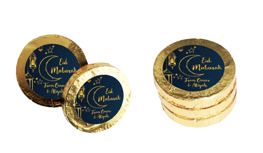Gold On Navy Eid Mubarak Personalised Chocolate Coin
