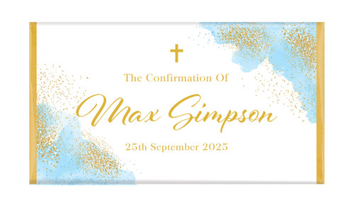 Gold Sparkle on Blue Confirmation Personalised Chocolate Bars