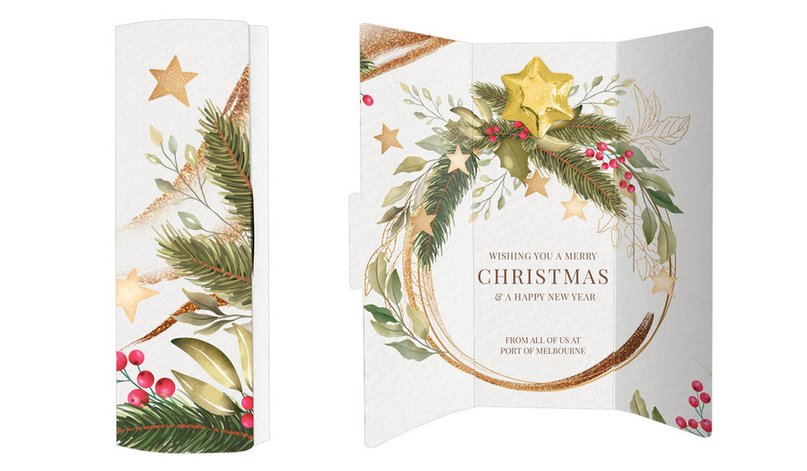 Golden Wreath Personalised Chocolate Christmas Card