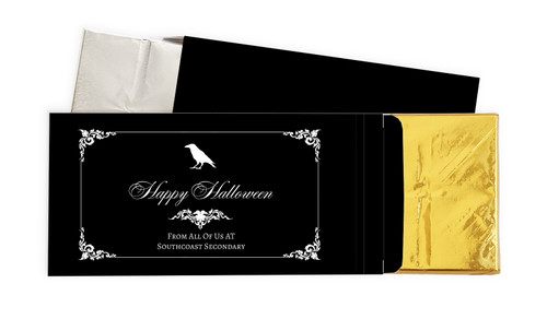 Gothic Raven Halloween Personalised Chocolate Bar In A Box