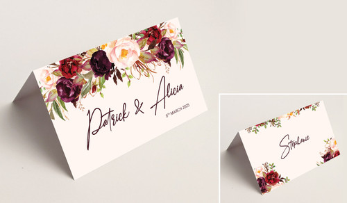 Hanging Flowers Wedding Place Cards With Guest Names