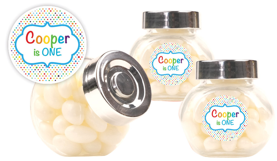 Happy Dots Kids Party Personalised Mini Candy Jar