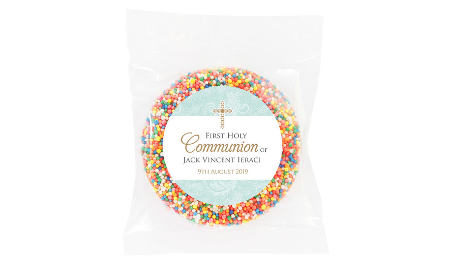 Lace Blue Personalised Communion Chocolate Freckle