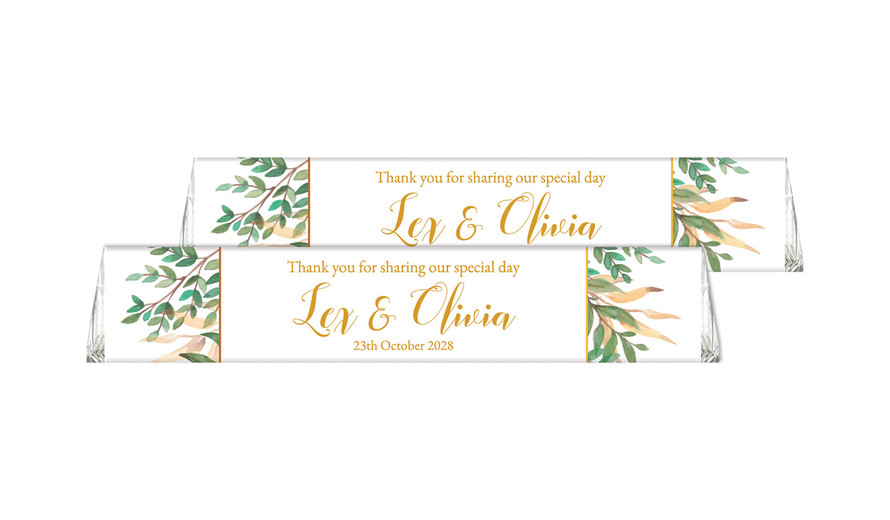 Leaves On Gold Toblerone Wedding Personalised Chocolates 50g