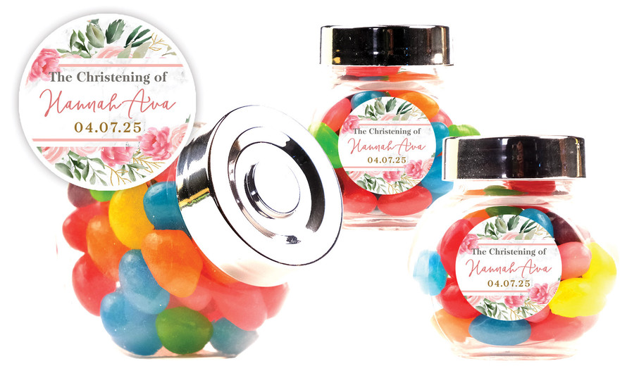 Magnificent Floral Christening Personalised Mini Candy Jar
