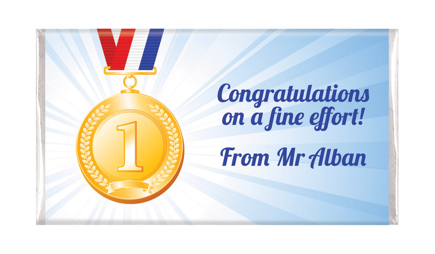 Nothing fills a child with pride like a gold medal, unless it is a gold medal wrapped around some milk chocolate. So use our Medal 1st Place Personalised School Chocolates to fulfill your students' every dream.