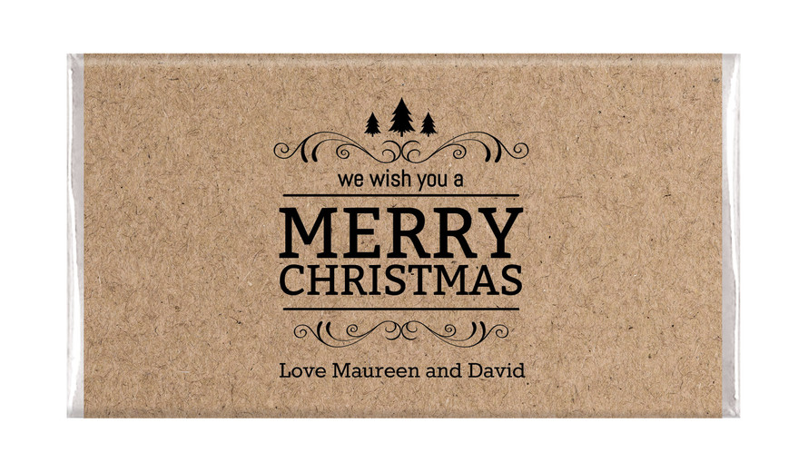 New this Christmas season, enjoy a rustic style festive season with our Natural Kraft range of Christmas chocolates. This paper has a beautiful, rough, old-school feel that your family and friends will love. Add your names too if you like.