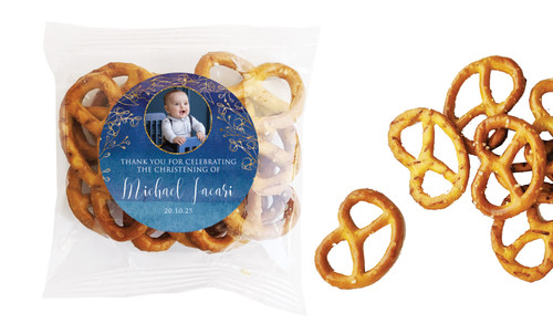 Navy Gold Photo Christening Personalised Bag Of Pretzels