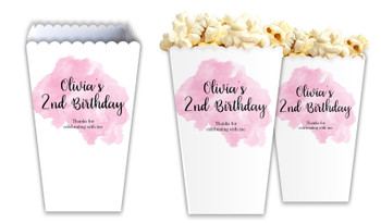 A Splash Of Watercolour In Pink Personalised Popcorn Boxes