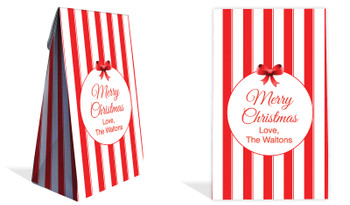 Stripes In Red Christmas Personalised Gusset Favour Bag