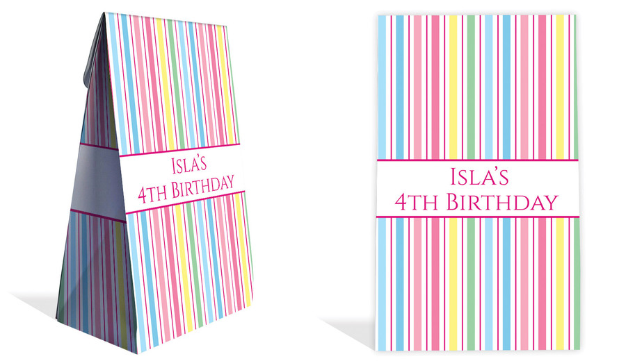 Pastel Stripe Kids Party Personalised Gusset Favour Bag