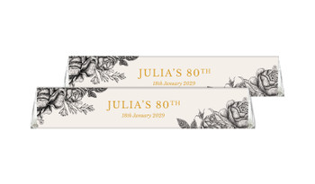 Like it or not, Toblerone is a chocolate for sophisticated folk. It's for those who like to enjoy the finer things in life and that's why we find personalised toblerones are very popular for adult birthday parties. They serve perfectly as a place-card due to their shape so you can add guest names to each bar if you like.