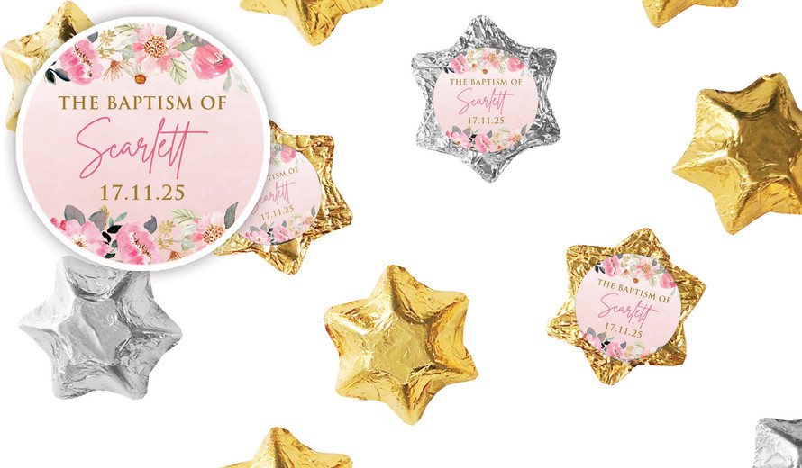 Photo On Floral Frame Christening Personalised Foil Chocolate Stars