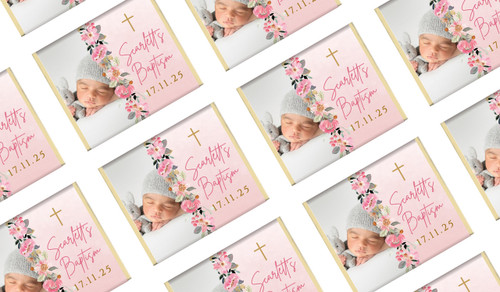 Photo on Floral Frame Personalised Christening Mini Chocolates