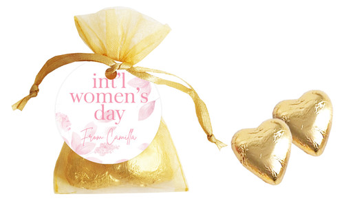 Pink Leaves Womens Day Personalised Organza Bag