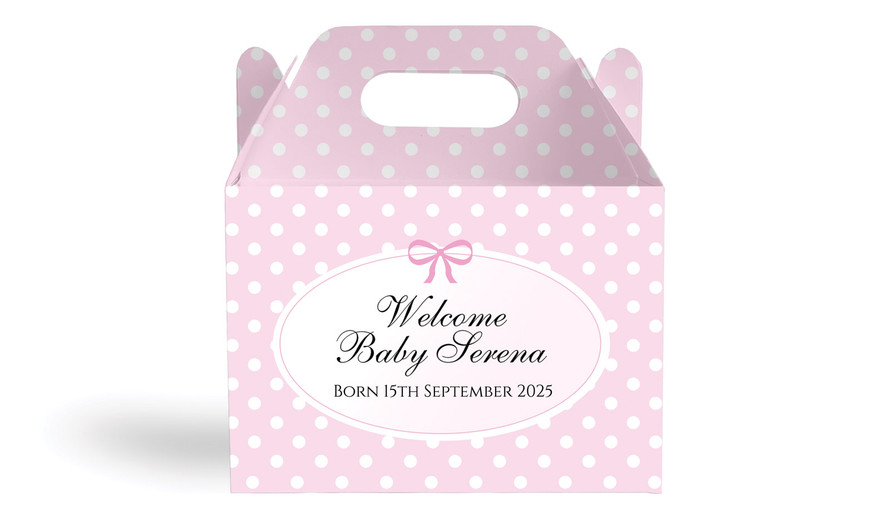 Polkadot Pink Birth Announcement Personalised Gable Favour Box