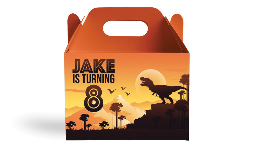 Prehistoric Dinosaur Kids Party Personalised Gable Favour Box