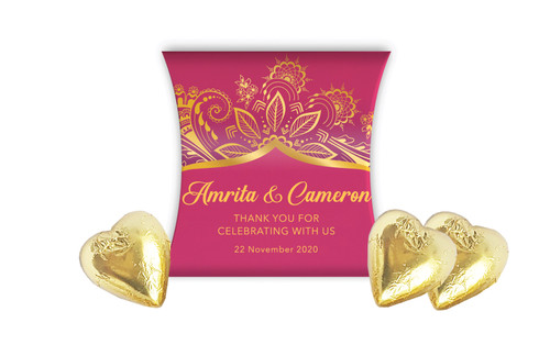 Regal Pink And Gold Wedding Personalised Pillow Boxes