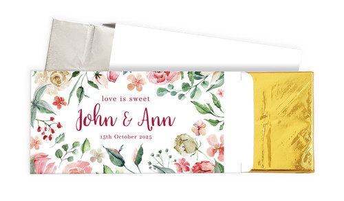 Rose Watercolour Wedding Personalised Chocolate Bar In A Box
